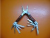 Features: multi function Knife includes two knives,Bottle & Can opener, Scissors, corkscrew ,Flash light ,compass ,awl .